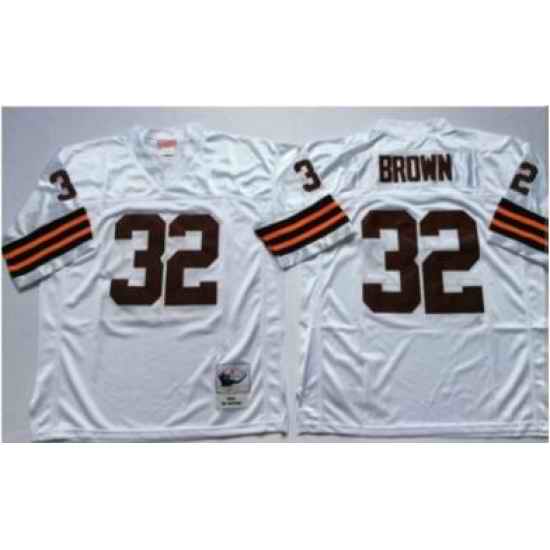 Men Cleveland Browns Custom White Jersey Throwback