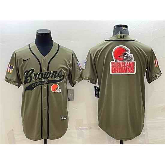 Men Cleveland Browns Olive 2022 Salute To Service Team Big Logo Cool Base Stitched Baseball Jersey