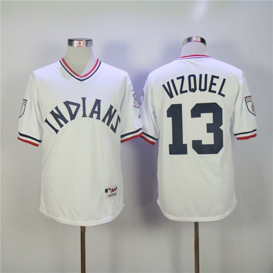 Men Cleveland Indians #13 Vizquel Whtie MLB Jerseys