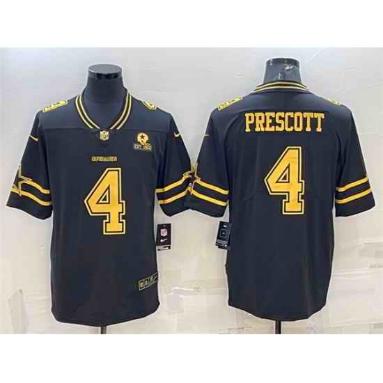 Men Dallas Cowboys #4 Dak Prescott Black Gold Edition With 1960 Patch Limited Stitched Football Jersey