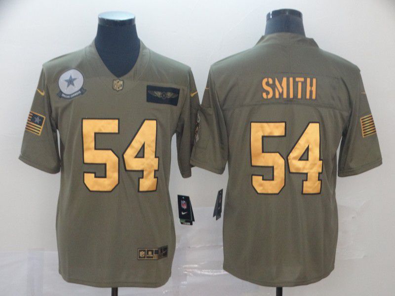 Men Dallas Cowboys #54 Smith Gold Nike Olive Salute To Service Limited NFL Jersey