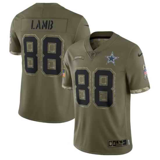 Men Dallas Cowboys #88 CeeDee Lamb Olive 2022 Salute To Service Limited Stitched Jersey