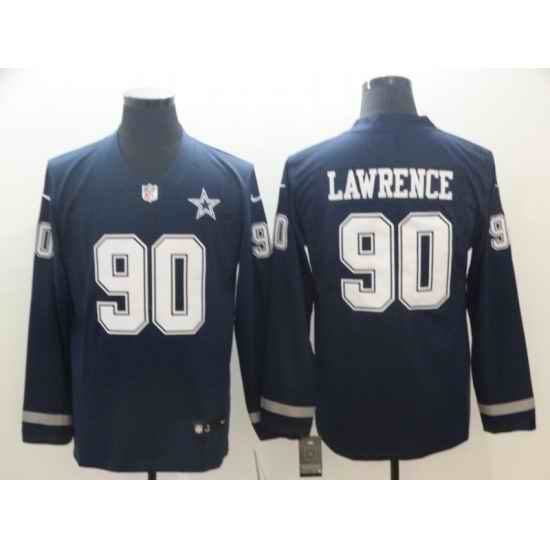 Men Dallas Cowboys #90 Demarcus Lawrence Navy Therma Long Sleeve Limited Jersey