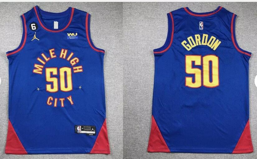 Men Denver Nuggets #50 Aaron Gordon High City Player Jumpman blue NBA 2024 Jersey