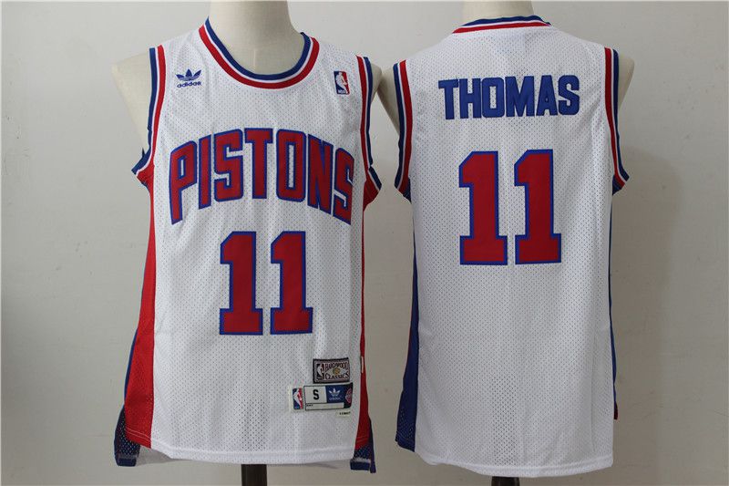Men Detroit Pistons #11 Thomas White Throwback Stitched NBA Jersey
