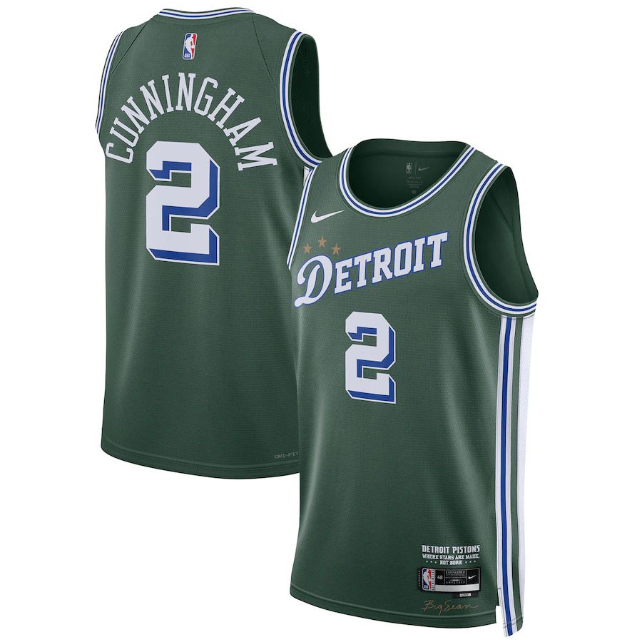 Men Detroit Pistons #2 Cade Cunningham Nike Green City Edition 2022-23 Swingman NBA Jersey