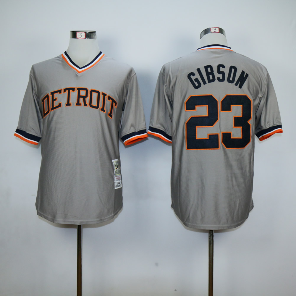 Men Detroit Tigers #23 Gibson Grey Throwback MLB Jerseys