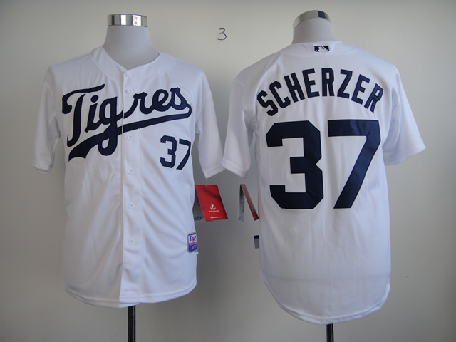 Men Detroit Tigers #37 Scherzer White MLB Jerseys1