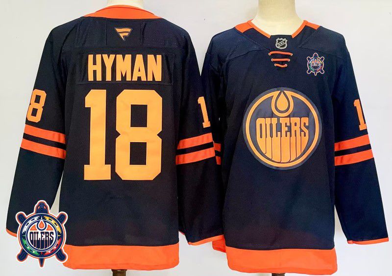 Men Edmonton Oilers #18 Hyman Black Fanatics 2025 NHL Jersey style 3