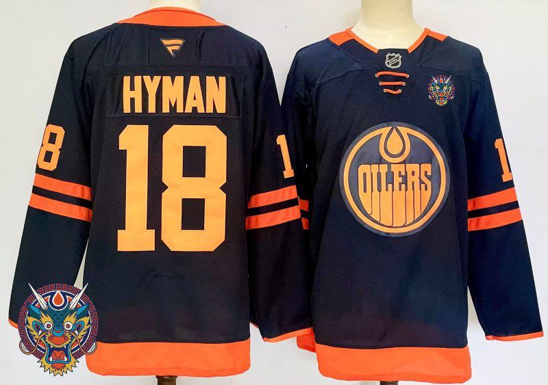 Men Edmonton Oilers #18 Hyman Black Fanatics 2025 NHL Jersey style 4
