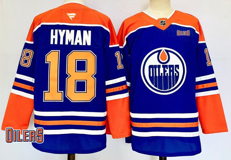 Men Edmonton Oilers #18 Hyman Blue Fanatics 2025 NHL Jersey style 3