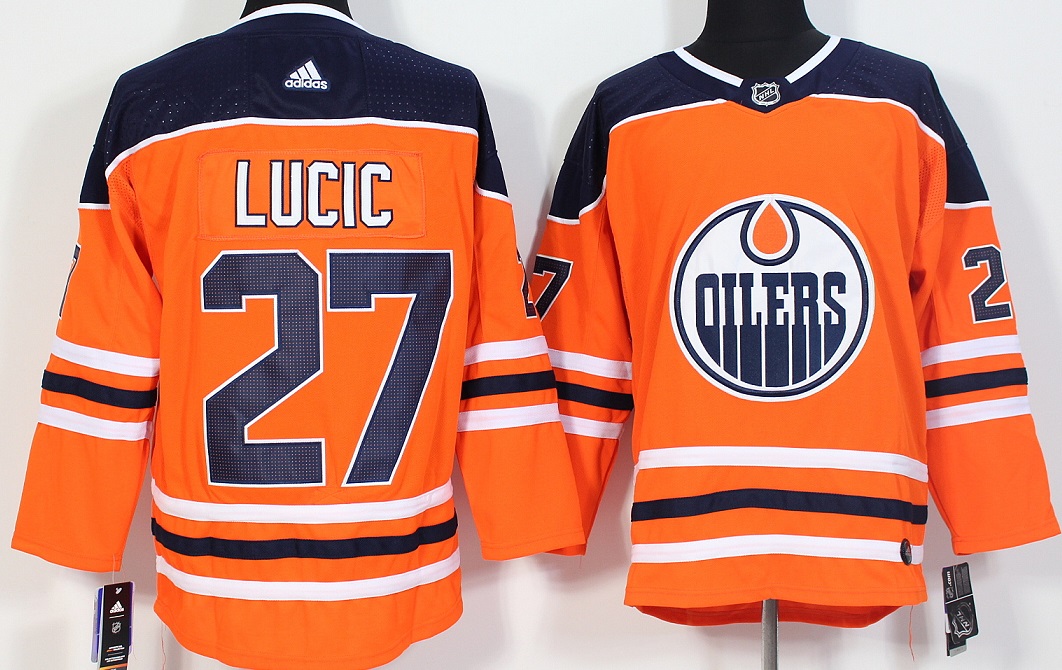 Men Edmonton Oilers #27 Lucic Orange Hockey Stitched Adidas NHL Jerseys