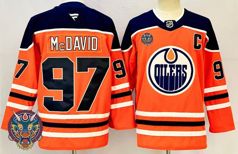 Men Edmonton Oilers #97 Mcdavid Orange Fanatics 2025 NHL Jersey style 4