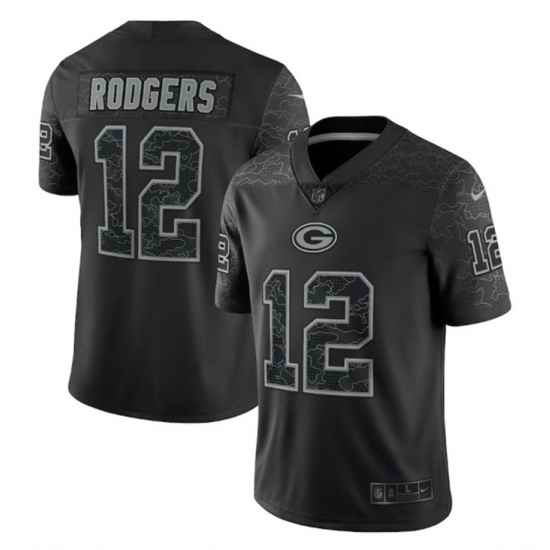 Men Green Bay Packers #12 Aaron Rodgers Black Reflective Limited Stitched Football Jersey