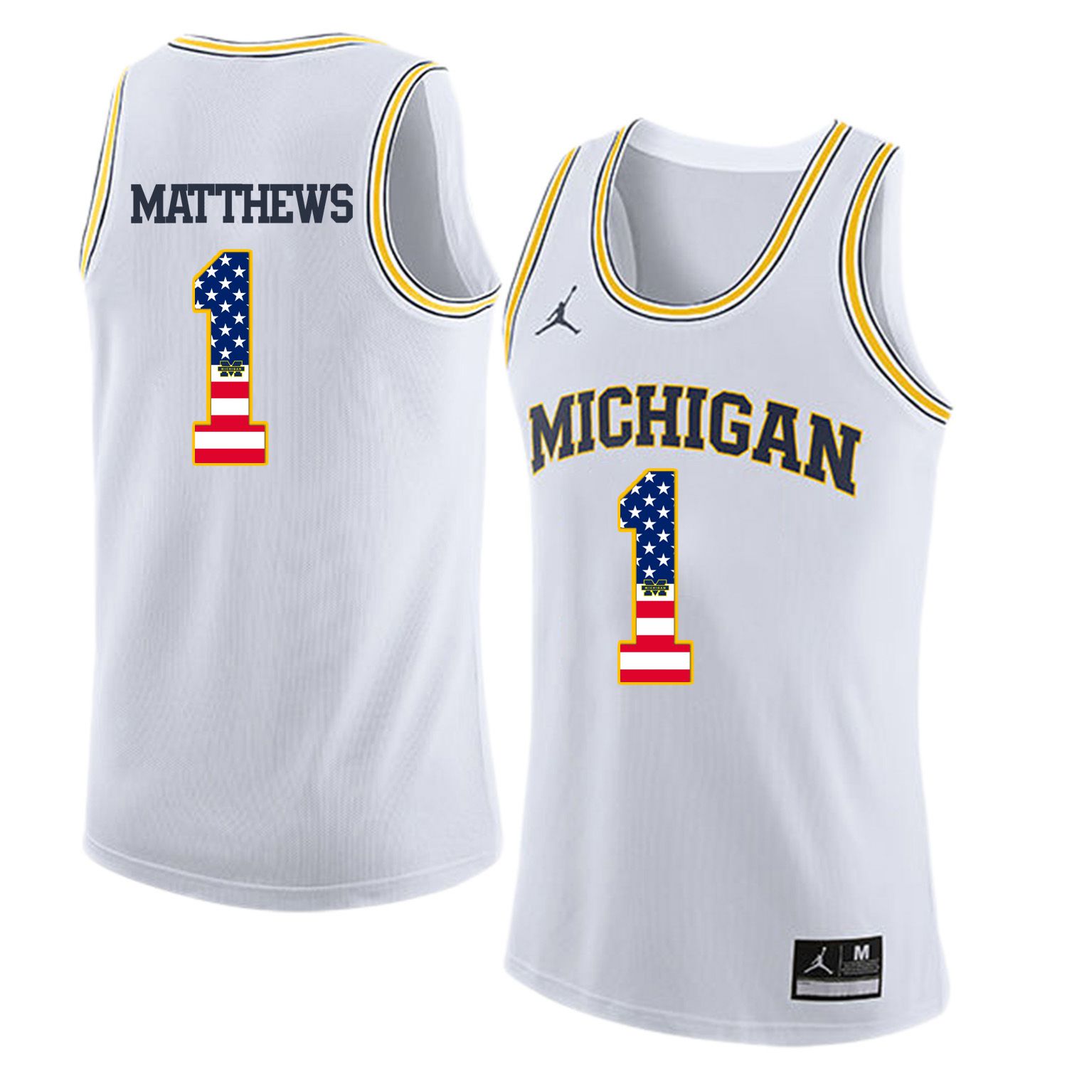 Men Jordan University of Michigan Basketball White #1 Matthews Flag Customized NCAA Jerseys