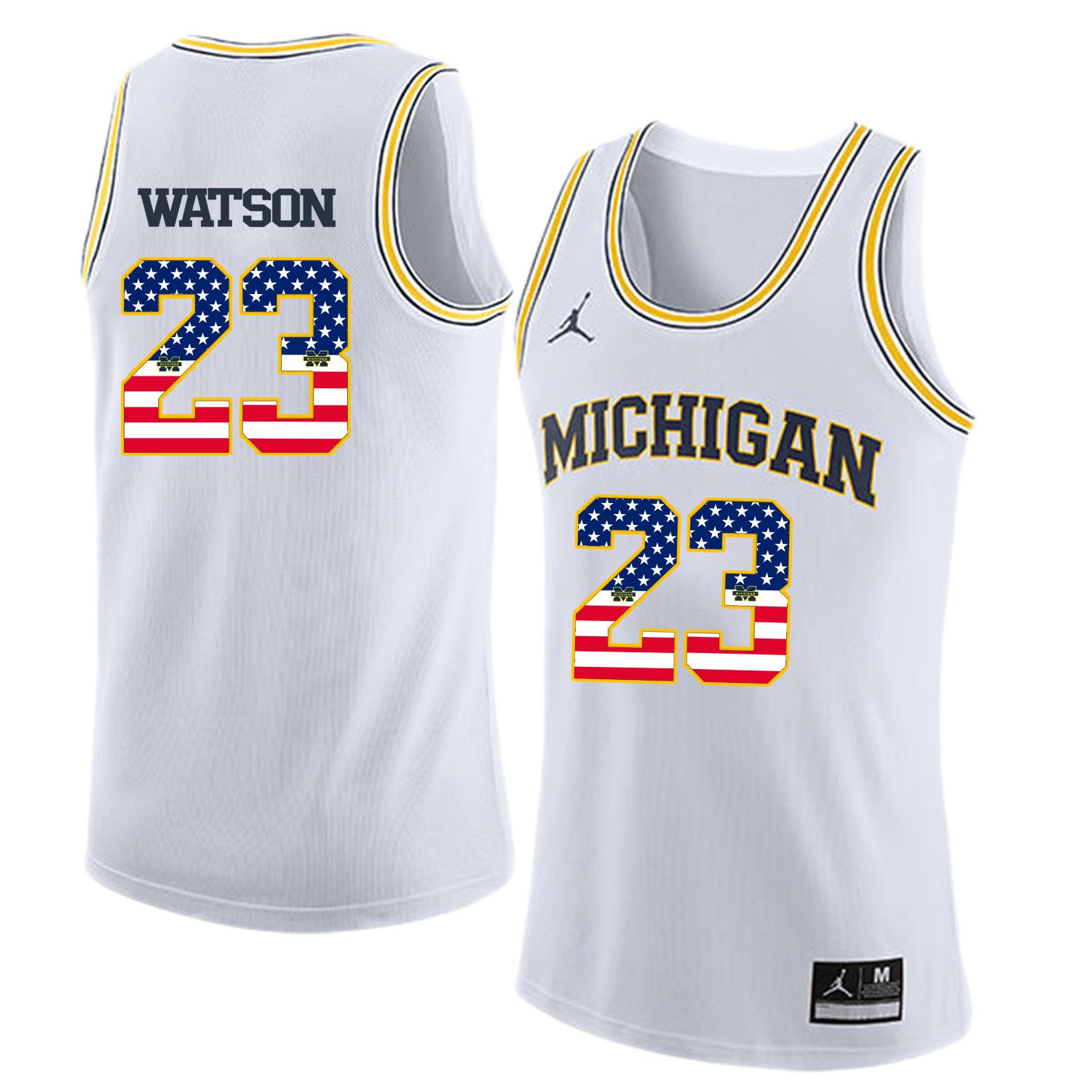 Men Jordan University of Michigan Basketball White #23 Watson Flag Customized NCAA Jerseys