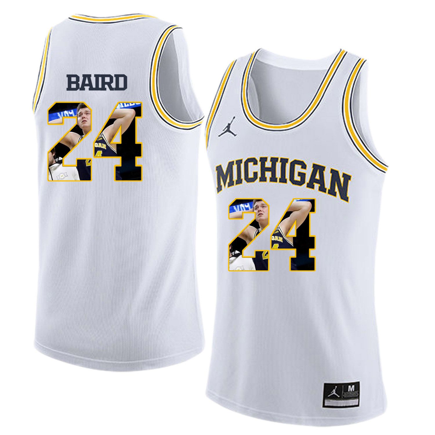 Men Jordan University of Michigan Basketball White #24 Baird Fashion Edition Customized NCAA Jerseys