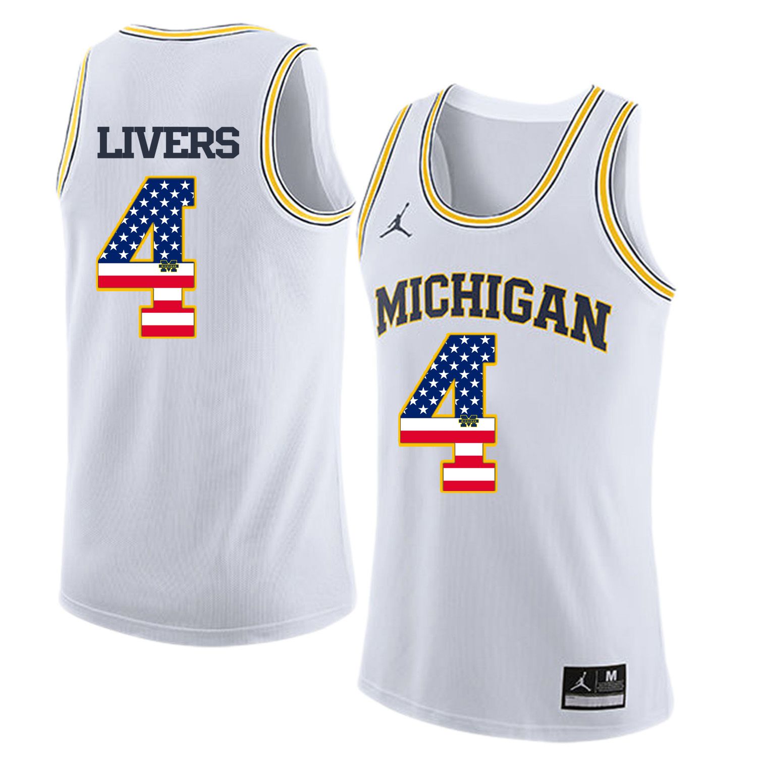 Men Jordan University of Michigan Basketball White #4 Livers Flag Customized NCAA Jerseys