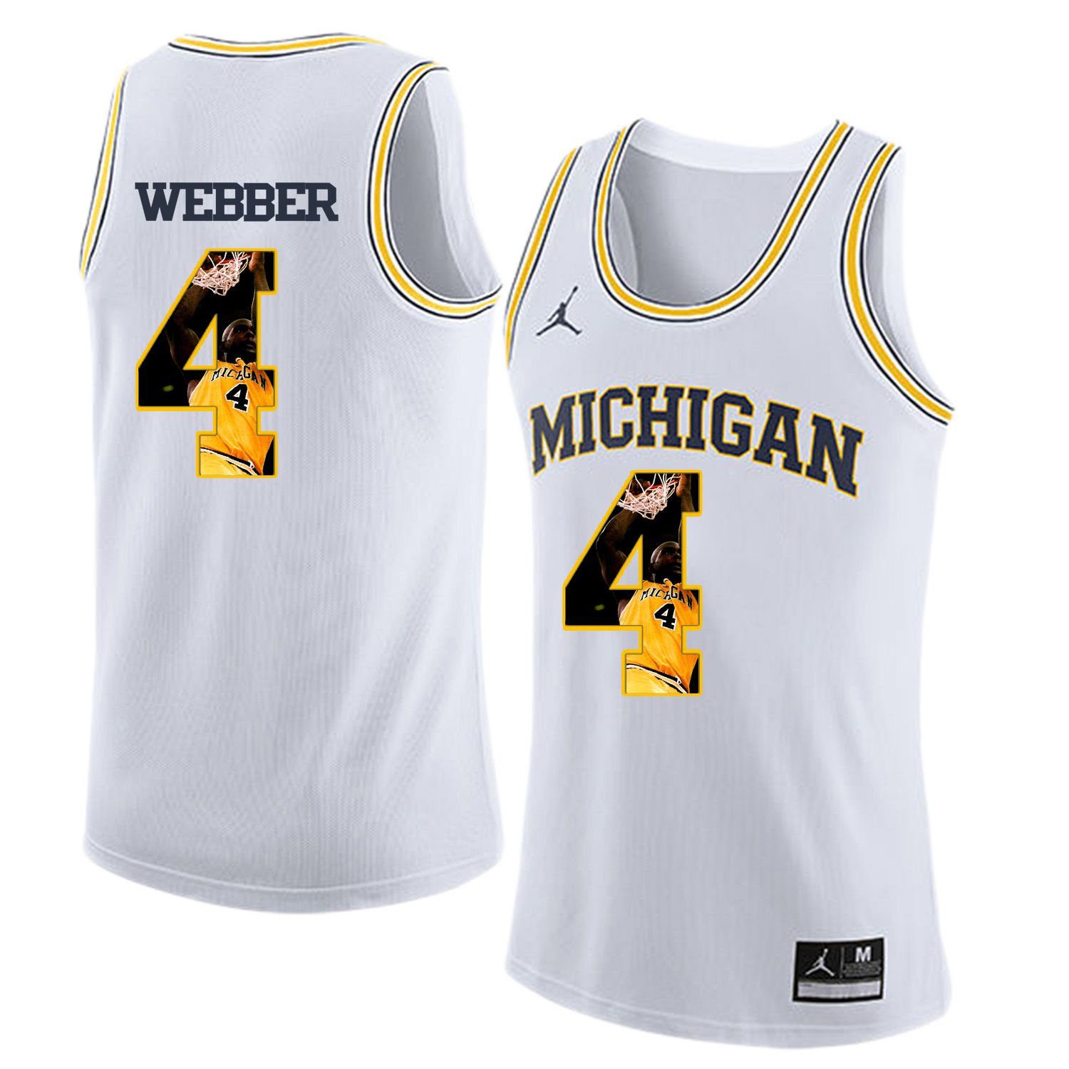 Men Jordan University of Michigan Basketball White #4 Webber Fashion Edition Customized NCAA Jerseys