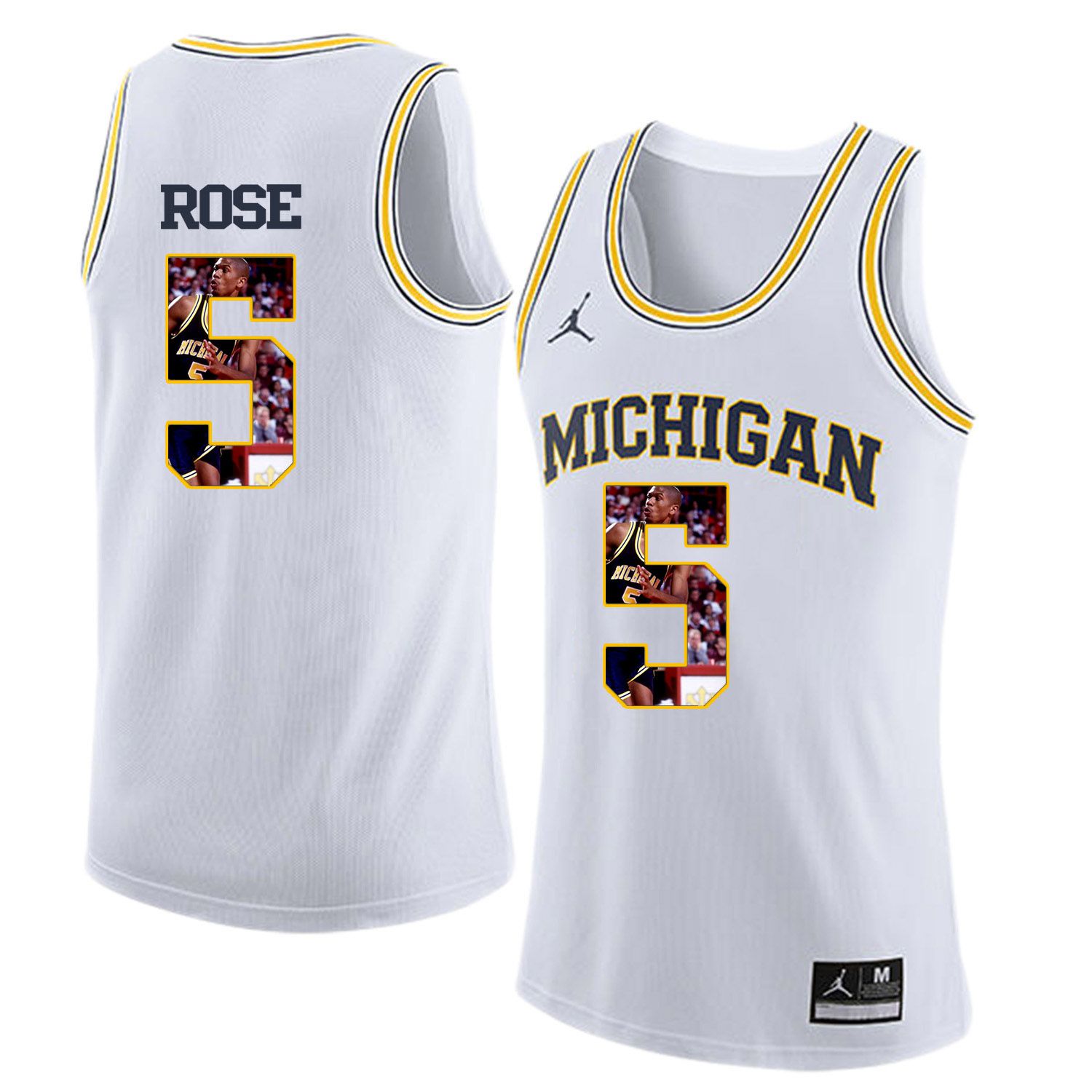 Men Jordan University of Michigan Basketball White #5 Rose Fashion Edition Customized NCAA Jerseys