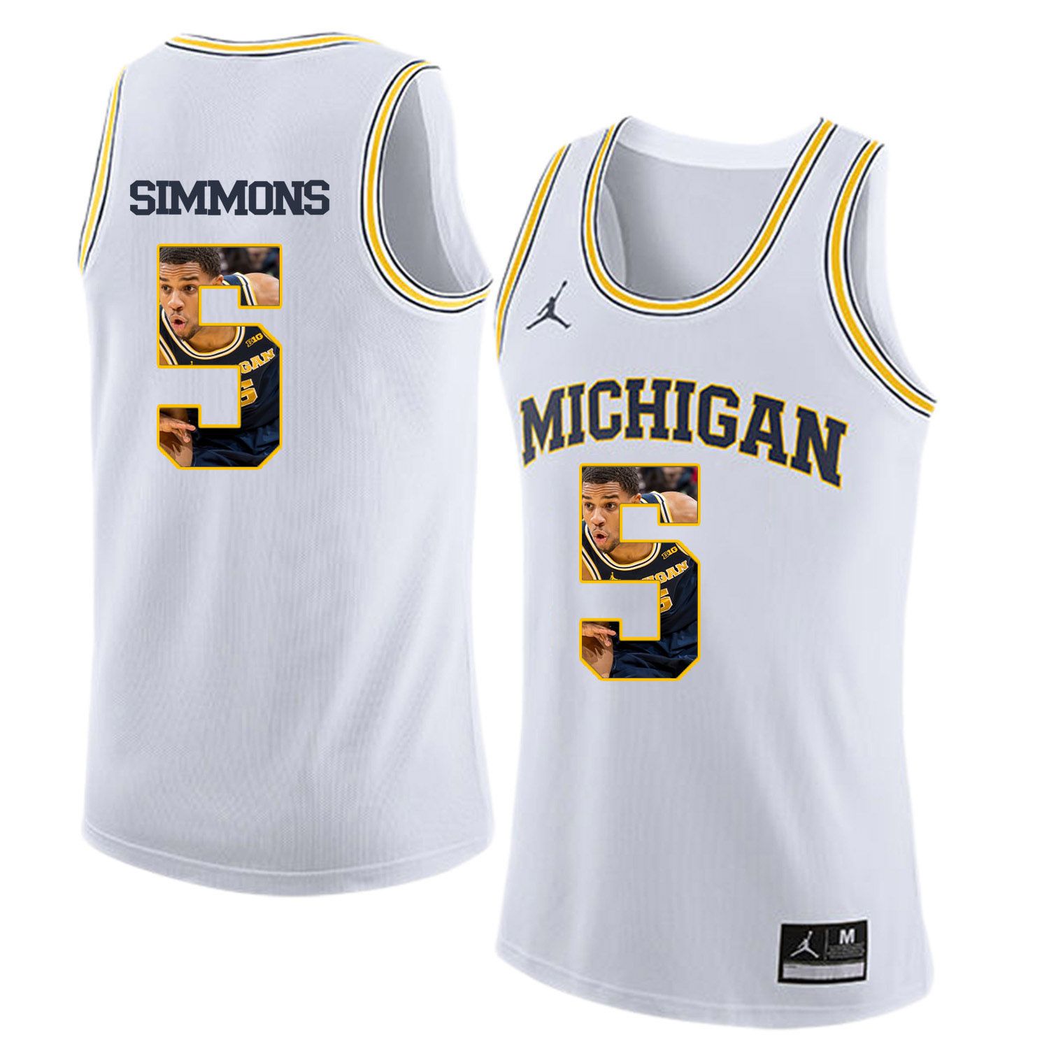 Men Jordan University of Michigan Basketball White #5 Simmons Fashion Edition Customized NCAA Jerseys