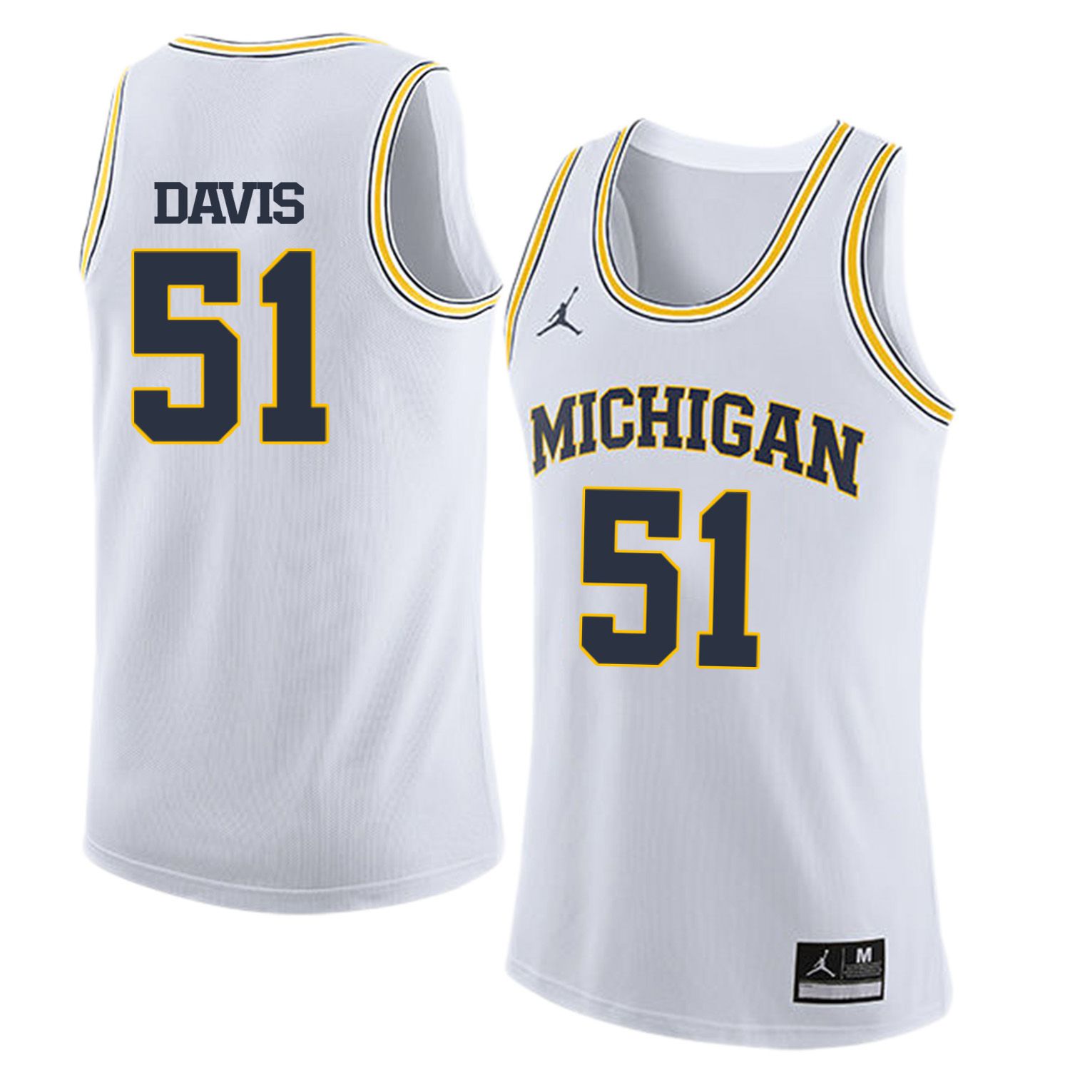 Men Jordan University of Michigan Basketball White #51 Davis Fashion Edition Customized NCAA Jerseys