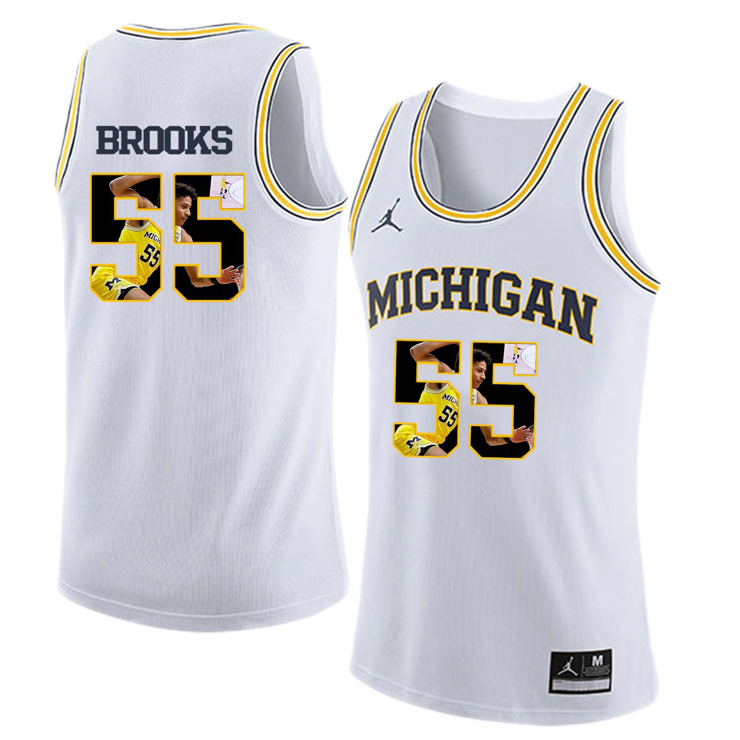 Men Jordan University of Michigan Basketball White #55 Brooks Fashion Edition Customized NCAA Jerseys