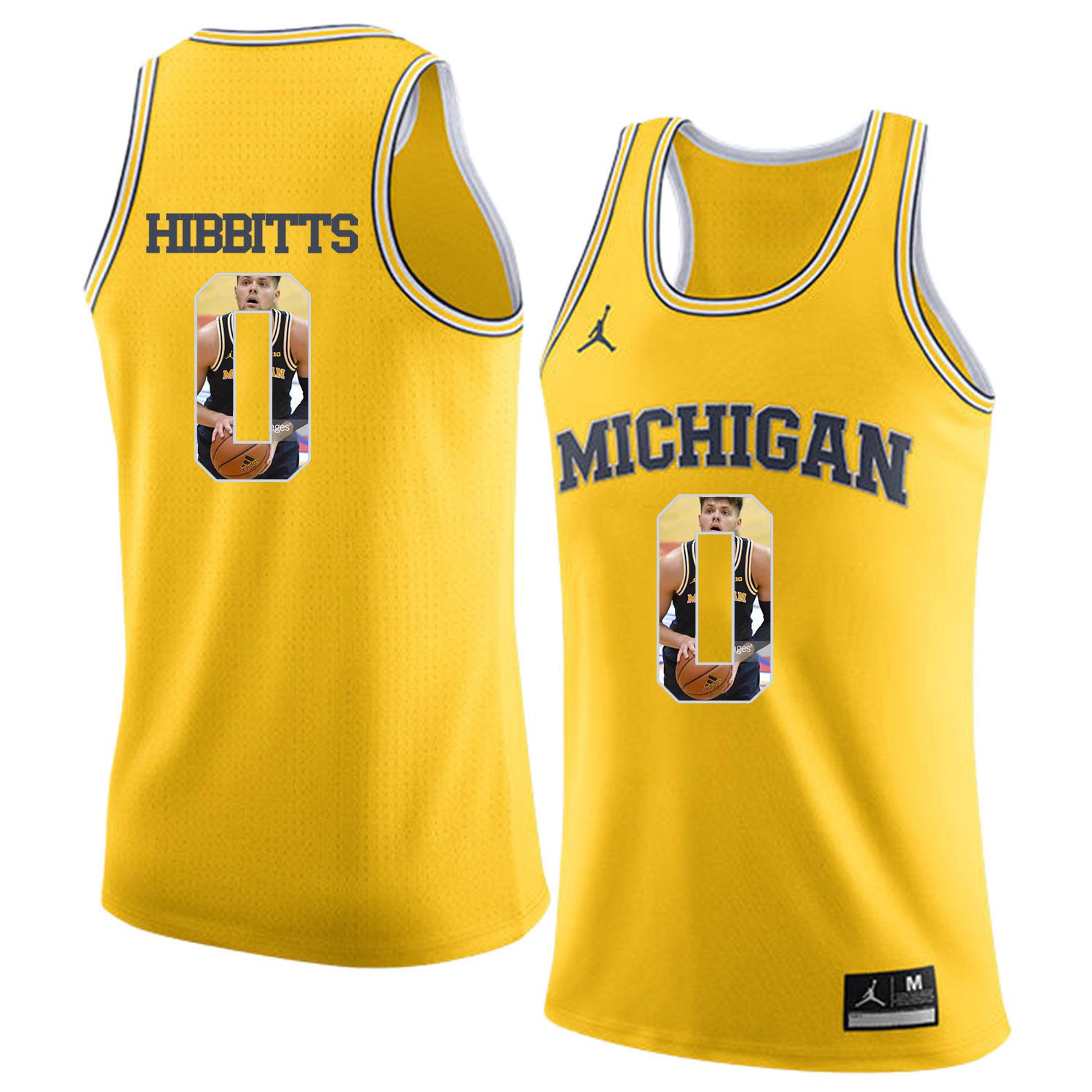 Men Jordan University of Michigan Basketball Yellow #0 Hibbitts Fashion Edition Customized NCAA Jerseys