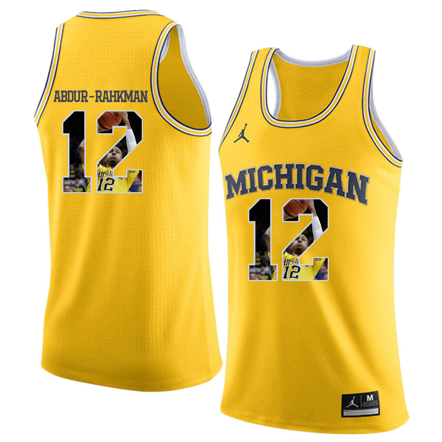 Men Jordan University of Michigan Basketball Yellow #12 Abdur-Rahkman Fashion Edition Customized NCAA Jerseys