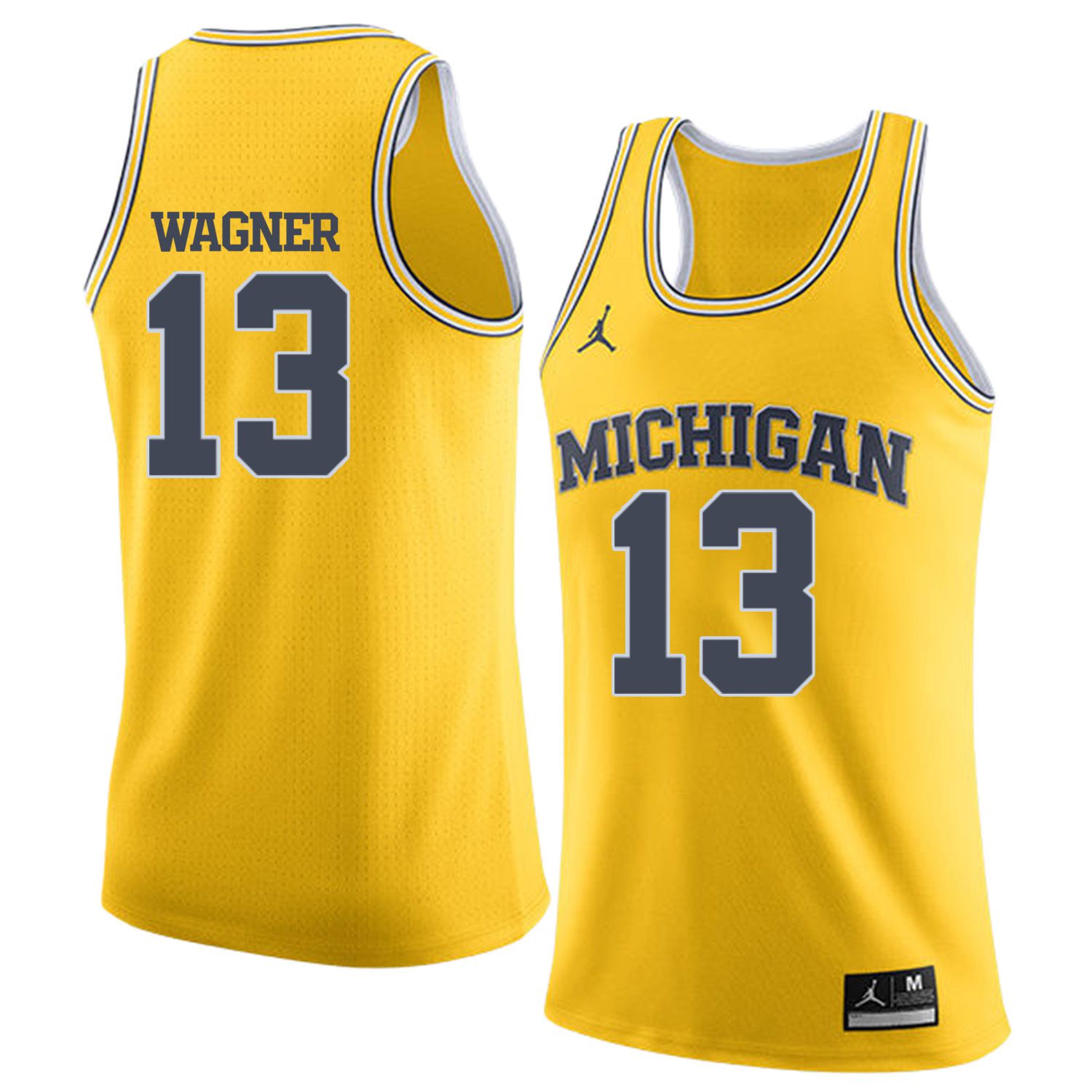 Men Jordan University of Michigan Basketball Yellow #13 Wagner Customized NCAA Jerseys