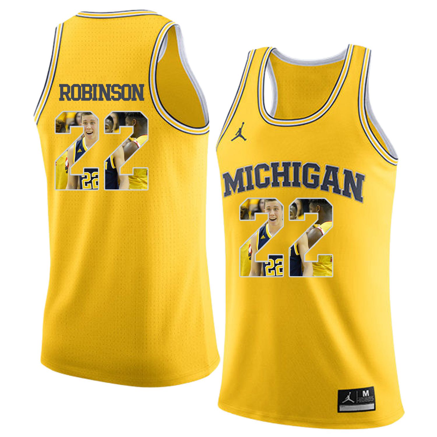 Men Jordan University of Michigan Basketball Yellow #22 Robinson Fashion Edition Customized NCAA Jerseys