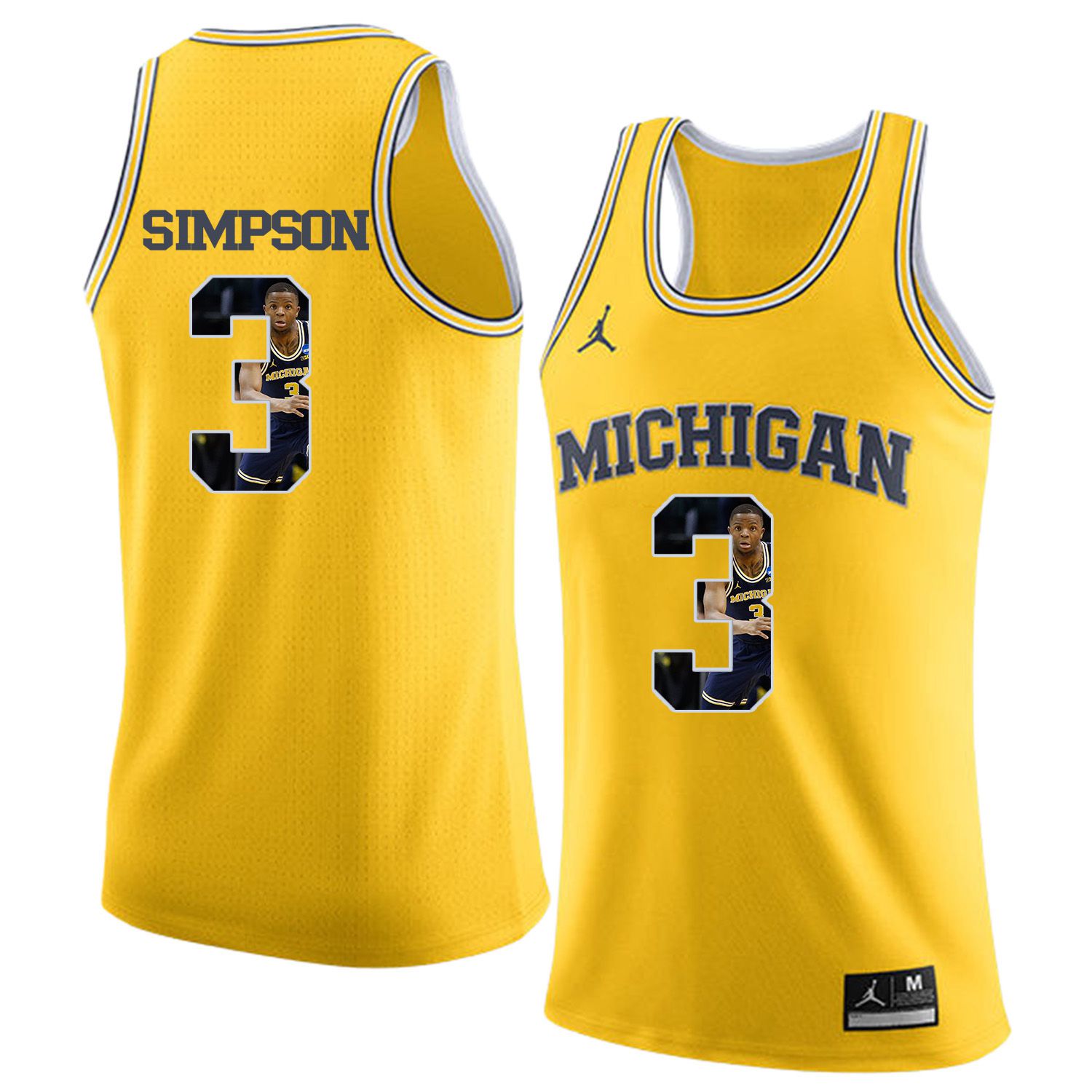 Men Jordan University of Michigan Basketball Yellow #3 Simpson Fashion Edition Customized NCAA Jerseys