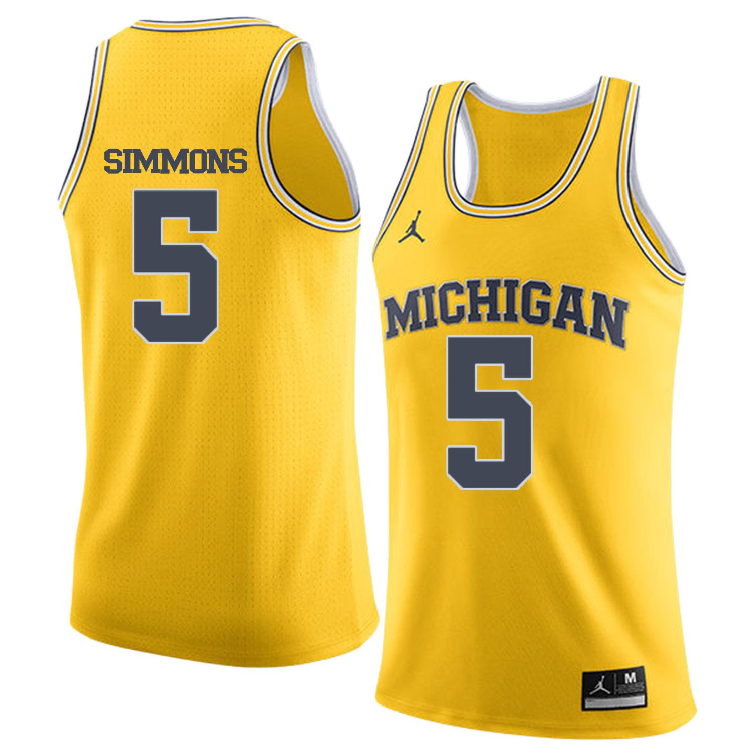 Men Jordan University of Michigan Basketball Yellow #5 Simmons Customized NCAA Jerseys
