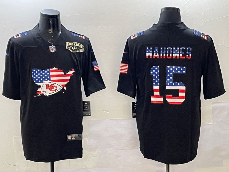 Men Kansas City Chiefs #15 Mahomes Black national flag 2025 Nike Vapor Limited NFL Jersey style 5