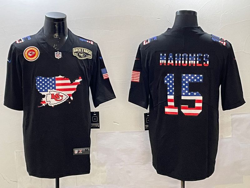 Men Kansas City Chiefs #15 Mahomes Black national flag 2025 Nike Vapor Limited NFL Jersey style 7