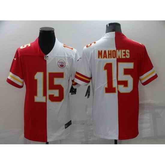 Men Kansas City Chiefs #15 Patrick Mahomes Red White Split Vapor Limited Stitched Jersey
