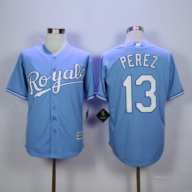 Men Kansas City Royals #13 Perez Light Blue Game MLB Jerseys