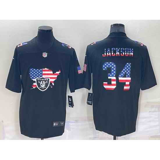 Men Las Vegas Raiders #34 Bo Jackson Black USA Flag Limited Stitched Jersey