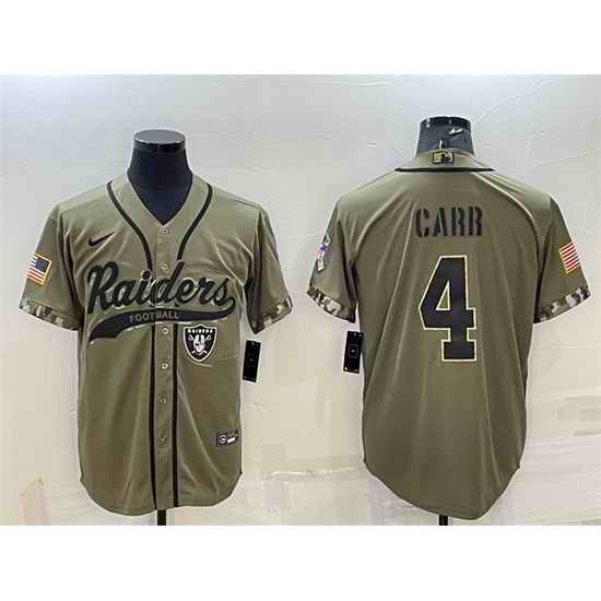 Men Las Vegas Raiders #4 Derek Carr 2022 Olive Salute To Service Cool Base Stitched Baseball Jersey