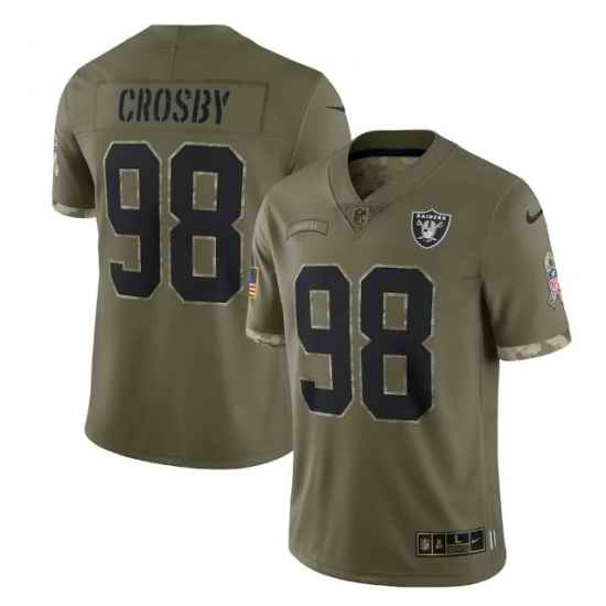 Men Las Vegas Raiders #98 Maxx Crosby Olive 2022 Salute To Service Limited Stitched Jersey