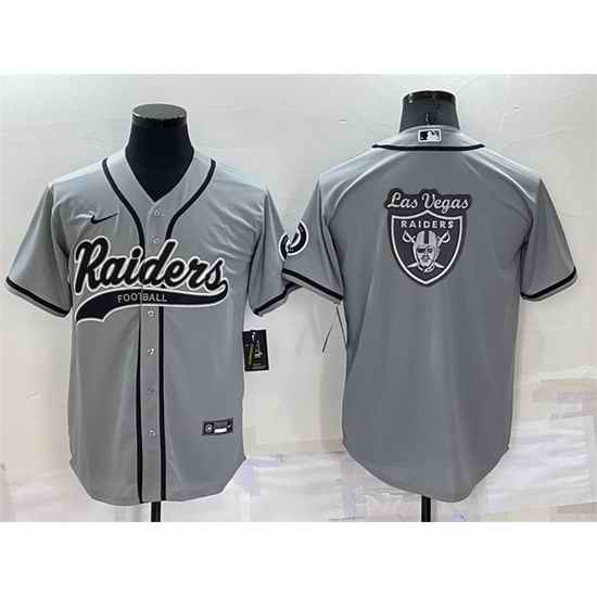 Men Las Vegas Raiders Grey Team Big Logo With Patch Cool Base Stitched Baseball Jersey
