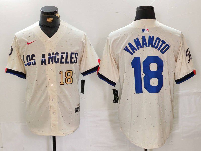 Men Los Angeles Dodgers #18 Yamamoto Cream Fashion Nike Game MLB Jersey style 31