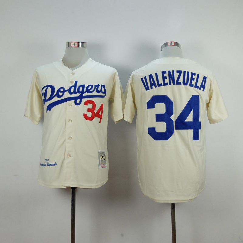 Men Los Angeles Dodgers #34 Valenzuela Cream Throwback MLB Jerseys