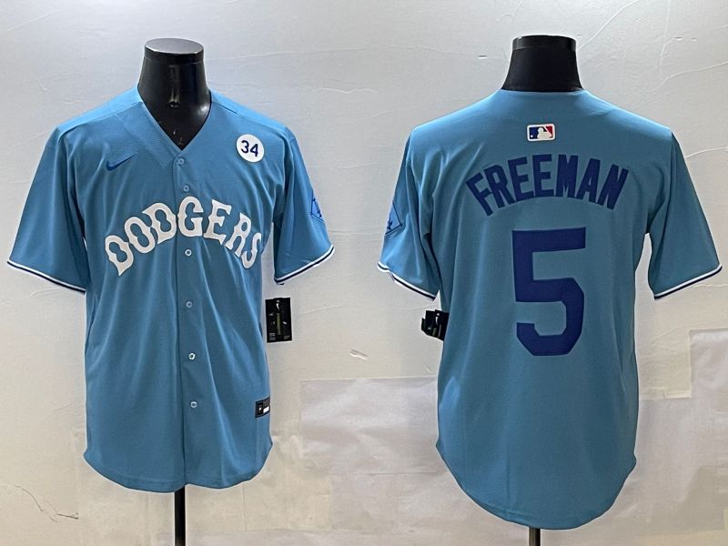 Men Los Angeles Dodgers #5 Freeman Light Blue Throwback Game 2025 Nike MLB Jersey style 7