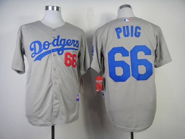 Men Los Angeles Dodgers #66 Puig Grey MLB Jerseys
