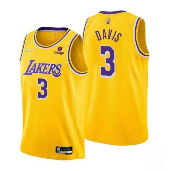 Men Los Angeles Lakers #3 Anthony Davis Yellow 75th Anniversary Stitched Jersey