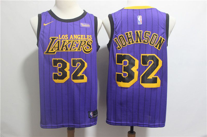 Men Los Angeles Lakers #32 Johnson Purple Stripe Nike Game NBA Jerseys