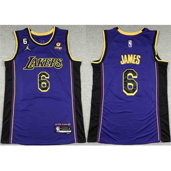 Men Los Angeles Lakers #6 LeBron James 2022 23 Purple Classic Edition No #6 Patch Stitched Basketball Jersey