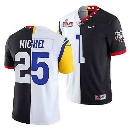 Men Los Angeles Rams X Georgia Bulldogs #25 Sony Michel Black White Split Super Bowl LVI Stitched Jerse