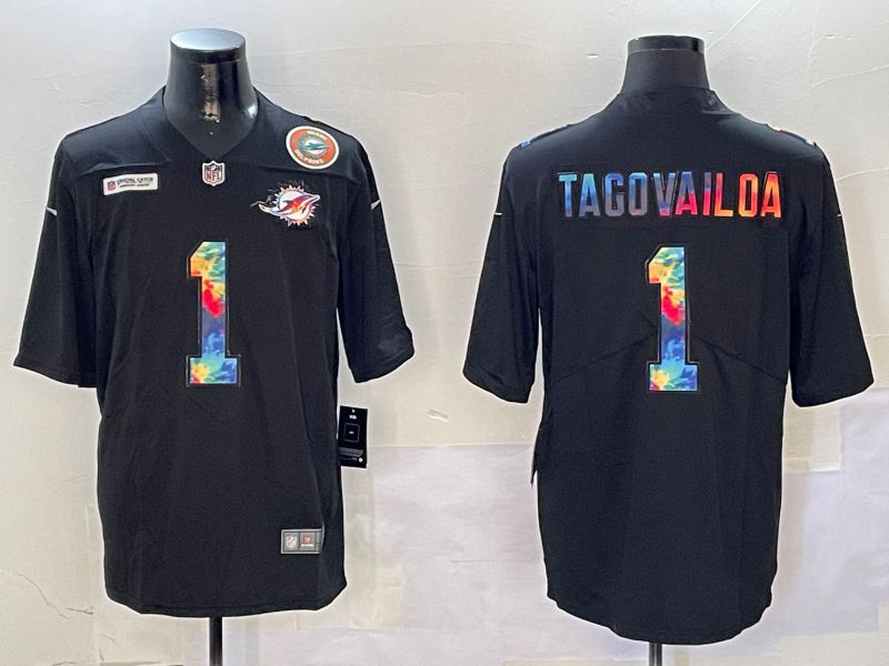 Men Miami Dolphins #1 Tagovailos Black Rainbow 2024 Nike Limited NFL Jersey style 2